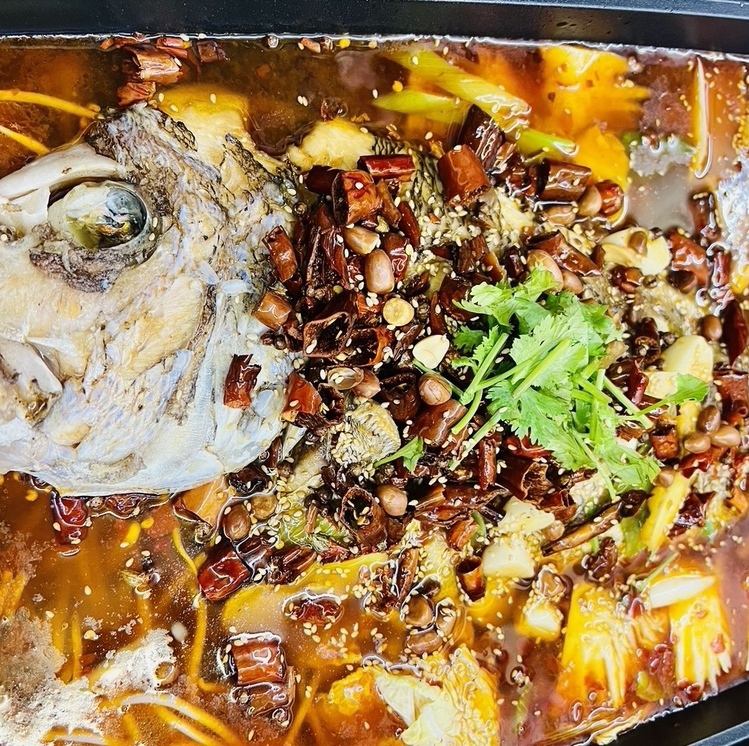 一匹の鯛がまるまる入った見た目もボリュームも大満足間違いなし!味付けは四川風でピリッと辛みもありお酒のアテにもおすすめです!4人でつまんで頂いても満足いただけるボリュームなので宴会やご家族での利用で是非お試しいただきたい一品。